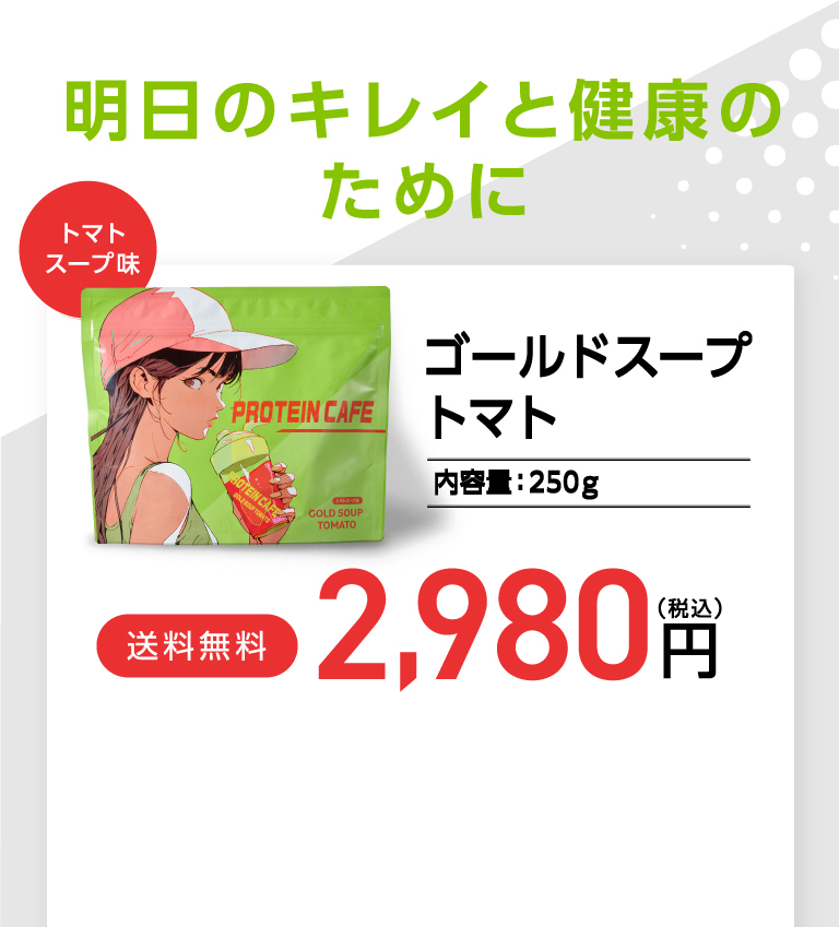 GOLD SOUP TOMATO 美味しいたんぱく質補給 美容も健康もサポート!プロテインスープ こんなお悩みはありませんか? こんな方に!HOTでもICEでも美味しい!ゴールドスープトマト